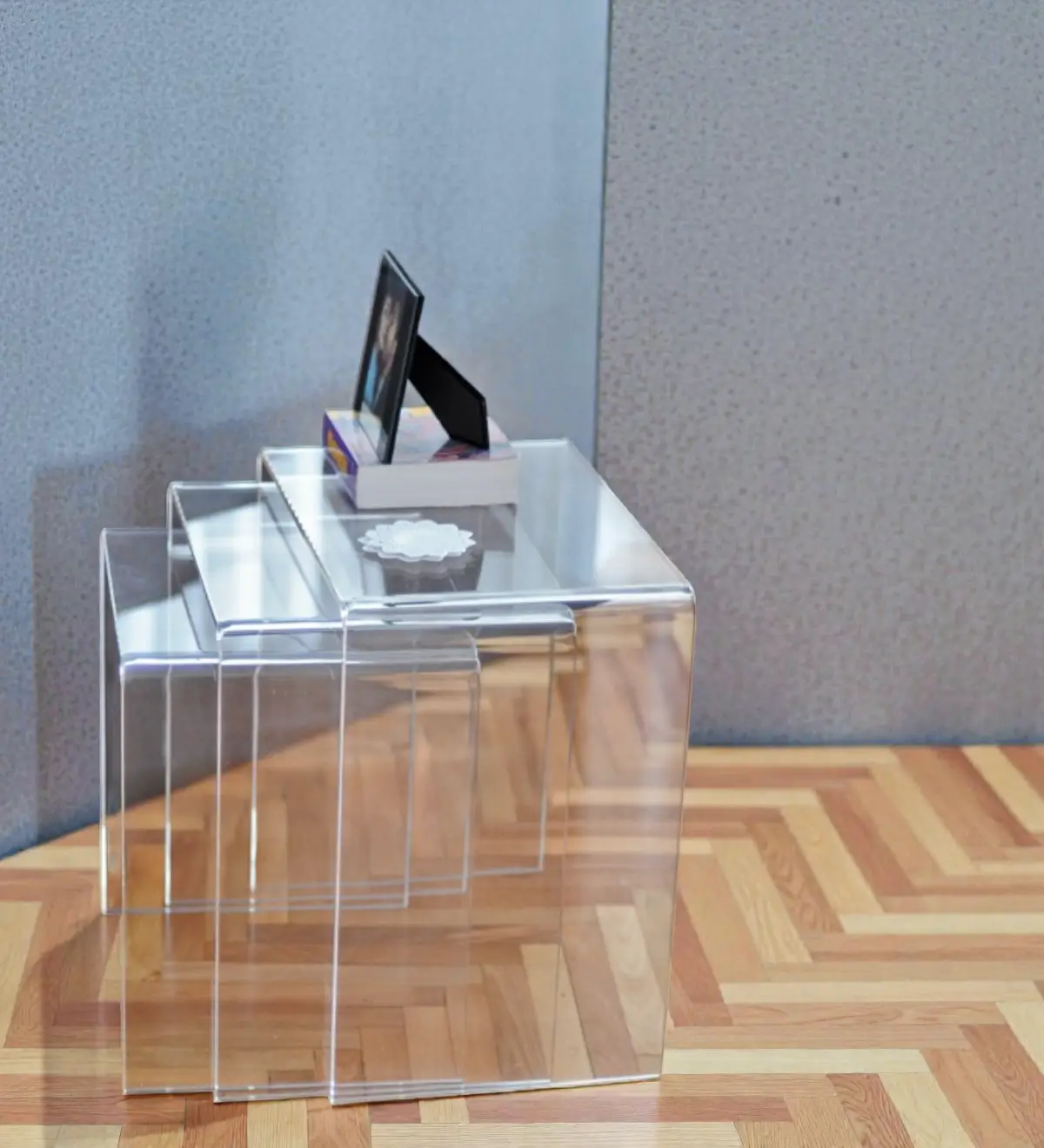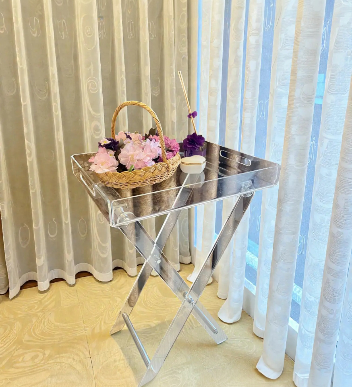 Pleksi sehpalar, şeffaf yapısıyla bulunduğu ortama ferahlık katar.
